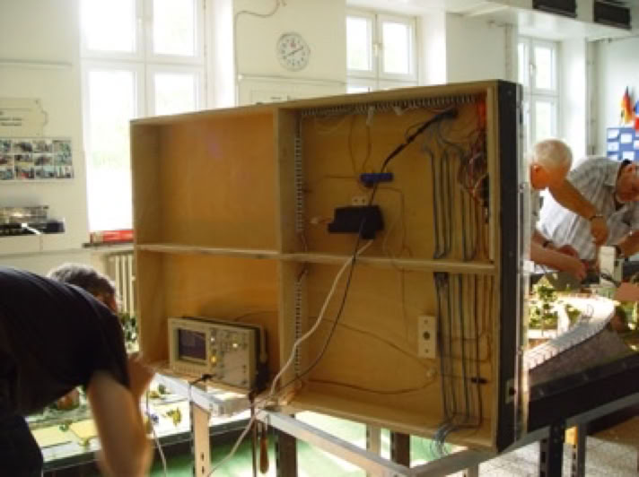 Es bleibt nicht aus: Nach einer Ausstellung in Altenbeken mussten wir am 11. Augist 2015 vor dem Wiederzusammenbau die große Anlage gründlich prüfen und Transportschäden beseitigen.