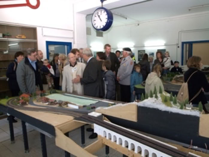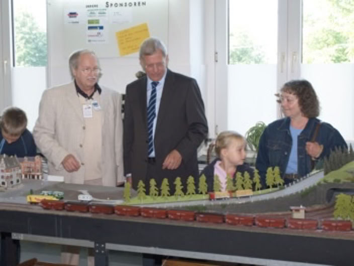 MES03-Geschäftsführer Dieter Lichtenberger führte den Minister und den belgischen Konsul durch die Modellbahn-Ausstellung des Vereins.