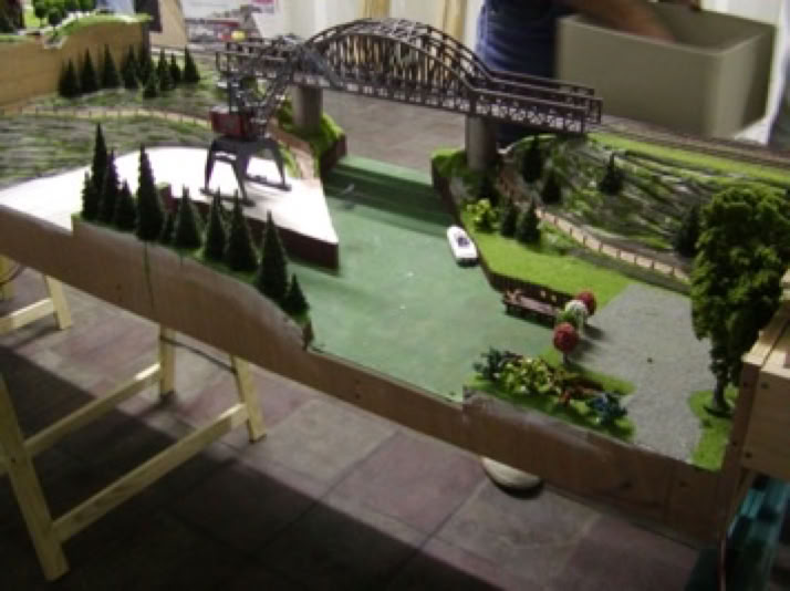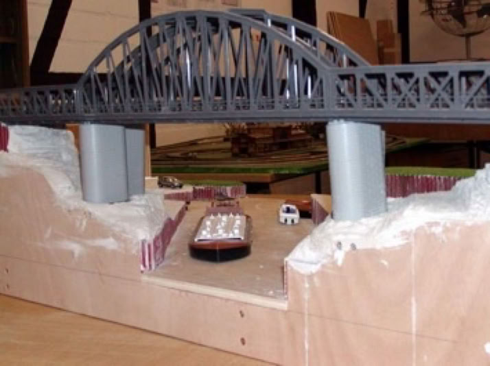 Hier die Bilder zur Entstehung eines Sondermoduls mit Brücke über einen Kanal.