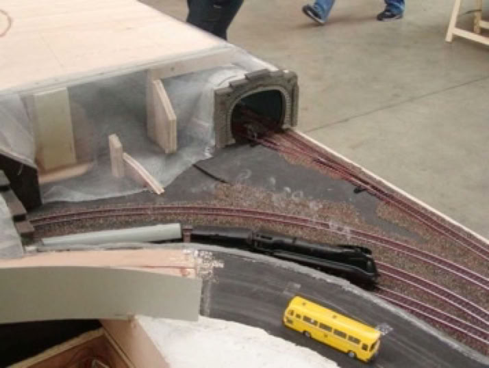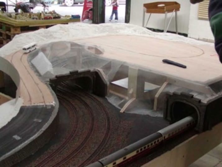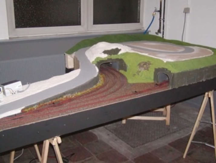 Das Modul im Sondermaß 220cm x 145cm beinhaltet einen dreigleisigen "Schattenbahnhof".